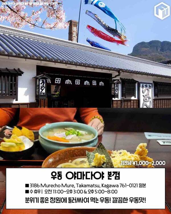 다음으로 소개할 노홍철 추천 일본 맛집은 '우동 야마다야 본점' 입니다. 다카마쓰에 위치한 우동 야마다야 본점은 일본 전통 가옥에서 정통 사누키 우동을 맛볼 수 있는 특별한 일본 맛집인데요.