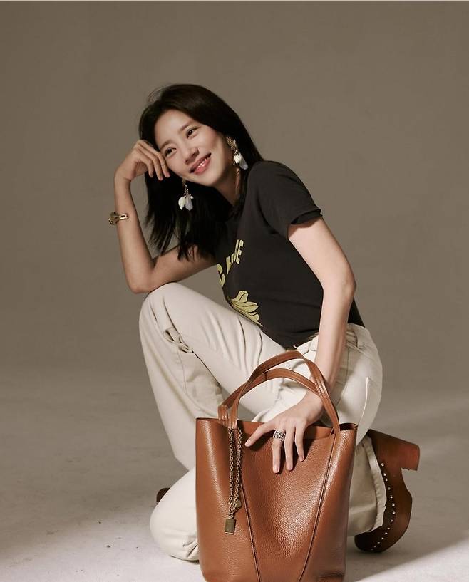 자연스럽게 드러난 웨이브 헤어와 누디한 메이크업은 ‘꾸안꾸 엄마’ 무드를 완성했고, 손담비가 든 브라운 가죽 토트백은 고급스러움의 정점을 찍었습니다.