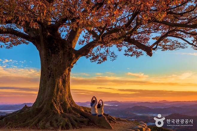 가림성의 풍경을 더욱 특별하게 만드는 건 성흥산 사랑나무다. 바위 절벽 옆 계단을 오르면 성벽 위에 우뚝 선 거대한 느티나무 한 그루가 등장하는데, 수령 400년이 넘는 이 나무는 가지가 하트 모양에 가깝게 자라 자연 그대로의 ‘사랑나무’라는 이름을 얻었다.