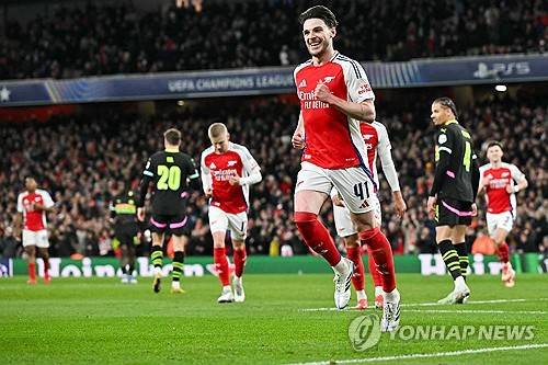 전반 37분 아스널이 다시 앞서나갔다. 라이스가 오른쪽에서 넘어온 스털링의 크로스를 헤더로 연결해 골망을 흔들었다. 1, 2차전 합계 무려 아홉 골째를 기록한 순간이었다.