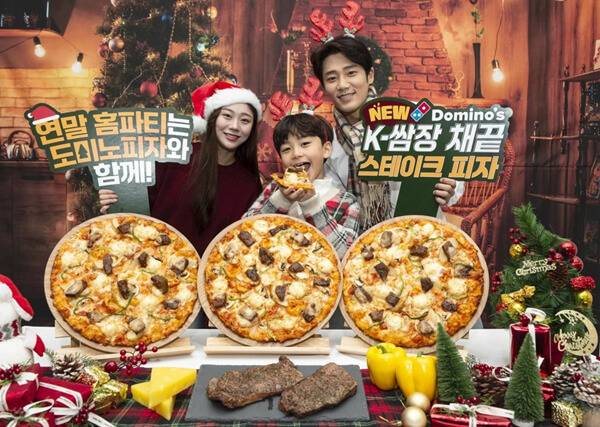 도미노피자는 신메뉴 ‘K 쌈장 채끝 스테이크 피자’를 출시했다. 신메뉴는 채끝 스테이크에 쌈장 소스를 결합했다. 소스는 비비큐 소스에 한국식 쌈장을 더했다. 가장 큰 강점은 피자 위 풍성하게 토핑이 된 카망베르 무스 치즈돔이다. 카망베르 무스 치즈돔은 카망베르 크림치즈 무스에 모차렐라 슬라이스를 얹어 부드럽고 쫄깃한 맛을 낸다. 매장 판매가는 라지 사이즈 기준으로 33,900원이다.