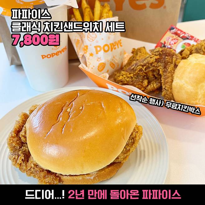 파파이스 is 뭔들 (^^) 넘나리 파파이스를 애정하는 1인이라 그런지 재오픈 소식만 기다렸는데요. 두툼한 치킨 패티에 입에서 녹는 부드러움! 거기다 특유의 짭조름한 간.. 두번.. 아니 세번.. 계속 갈래요..