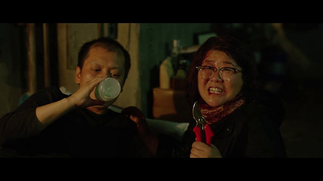 문광이 지하실에서 남편에게 젖병을 물리는 장면. 많은 이들이 낯설고 기괴하게 느꼈지만, 이정은에게는 자연스러운 감정의 연장이었다.