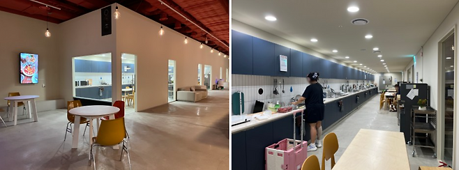 로컬스티치 서교 크리에이터 타운의 지하 1층은 거주자를 위한 편의시설이 모여 있는 곳이기도 하다. 그 첫 번째 공간이 바로 공용주방이다. 인덕션, 전자레인지를 비롯한 조리도구는 물론 식기까지 갖춰져 있어 갖춰져 있어 식재료만 지참하면 된다.