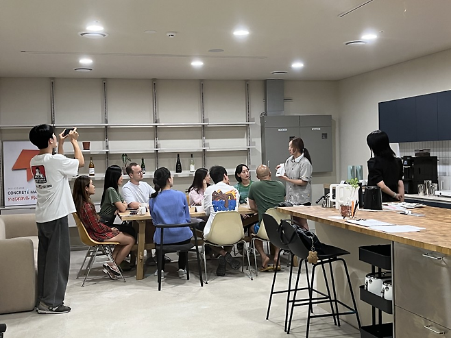 커피 브루윙이라는 체험 그 자체보단 서로의 만남에 더 큰 의미가 있다. 본격적인 프로그램 시작에 앞서, 참여자는 간단히 자기소개를 하며 서로를 알아갔다. 하는 일, 입주 시기부터 이곳에 머물게 된 계기까지 30여 분이라는 짧은 시간 동안 제법 다양한 이야기가 오갔다. 프로그램에 참여한 한 멤버는 “크리에이터 타운 을지로에서의 추억을 떠올리며 서교타운으로 이사 왔다”면서 “낮에는 코워킹 오피스에서 일하고 저녁에는 주방에서 함께 요리를 즐기곤 한다”라며 이곳의 매력을 전했다.