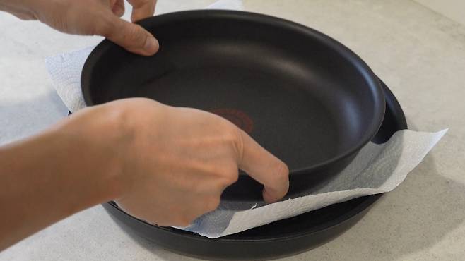 접시나 프라이팬 등을 보관할 땐 항상 겹쳐 놓기 마련이에요. 이렇게 하면 공간을 아낄 수 있지만 스크래치나 파손에 취약할 수밖에 없어요.
