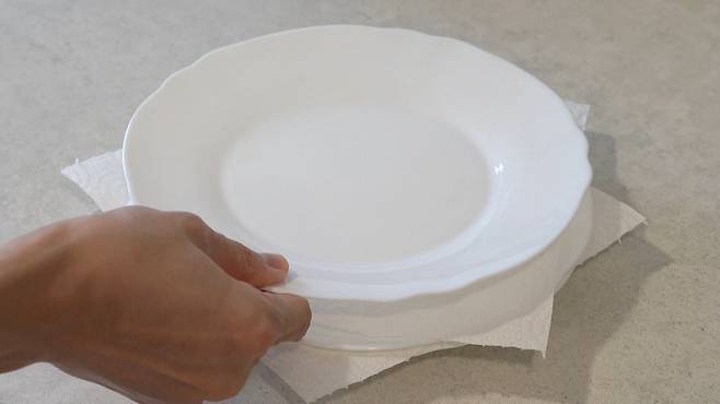 그럴 땐 얼룩이 있는 곳에 키친타월을 올려 두세요. 그리고 식초를 조금 뿌리세요. 이제 5분 정도 기다립니다. 이후 수세미로 닦은 후 물로 깨끗하게 헹궈 주면 끝이에요.
