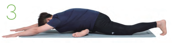 양팔을 앞으로 뻗어 이마가 바닥에 닿도록 엎드리고 온몸에 힘을 뺀 채 10초간 자세를 유지합니다.