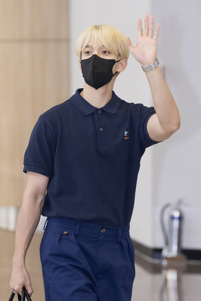 그럼 도겸이 공항 출국길 속 착용한