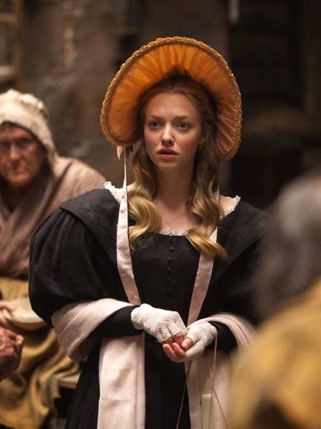 뮤지컬 영화 ‘레 미제라블’에서 코제트 역을 맡아 코르셋 드레스와 레이스 디테일이 풍성한 빅토리안 로맨틱 스타일을 선보였습니다. 은은한 로즈빛 메이크업과 단아한 업두 헤어는 그녀를 고전적인 여배우처럼 보이게 했습니다.