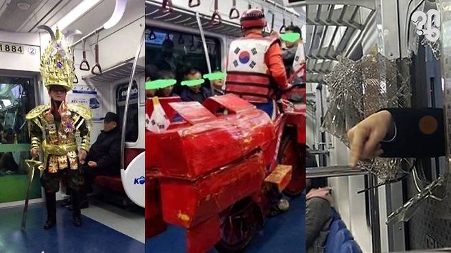 그래도 특이한 행색으로 그저 남들 눈살 찌푸리게, 가끔은 헛웃음 짓게 하는 이상행동으로 그치는 경우는 다행인 편이다. 더 심각한 경우는 지하철 기물을 파손하는 원펀맨이나 좌석에 냅다 방뇨를 하는 소변남, 타 승객에게 폭력을 쓰기까지(!!). 절대 웃으며 볼 수 없는 심각한 상황이 발생하기도 한다.