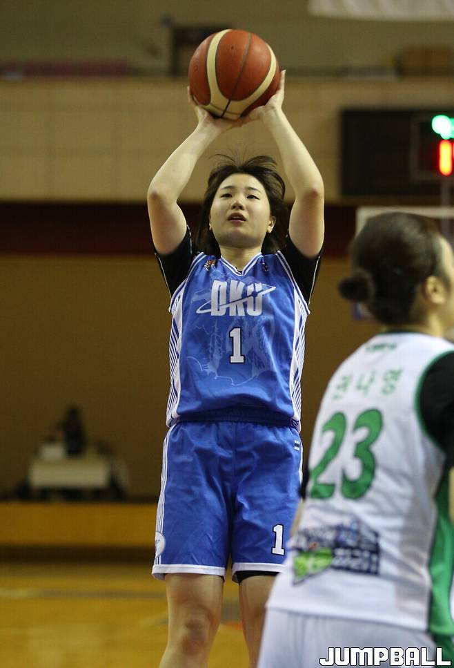 박성은(177cm, C)이 더블더블을 작성하며 골밑을 책임지고, 문지현(168cm, F)이 평균 4.14개와 성공률 44.6%로 양과 질 모두 최고인 3점슛을 폭발시키고, 박지수(176cm, F)가 두루두루 고른 활약을 펼치는 게 단국대의 힘이다.