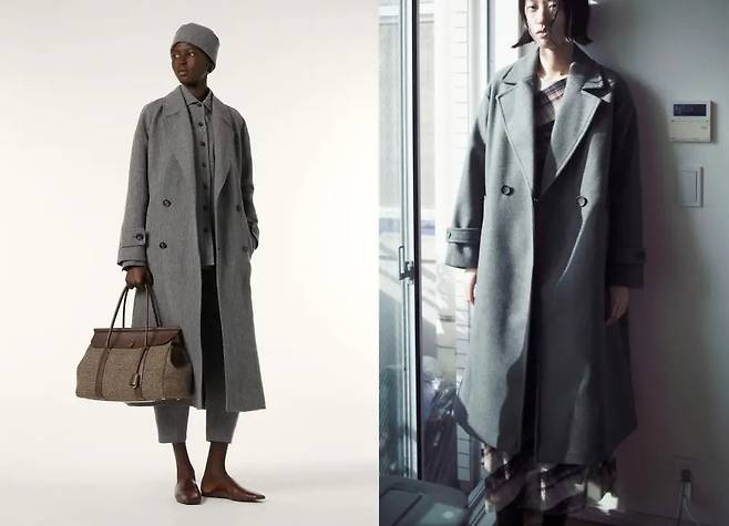 (왼쪽)로로피아나 포스터 코트 845만 원, (오른쪽)자라 소프트 오버사이즈 코트 12만 9,900원