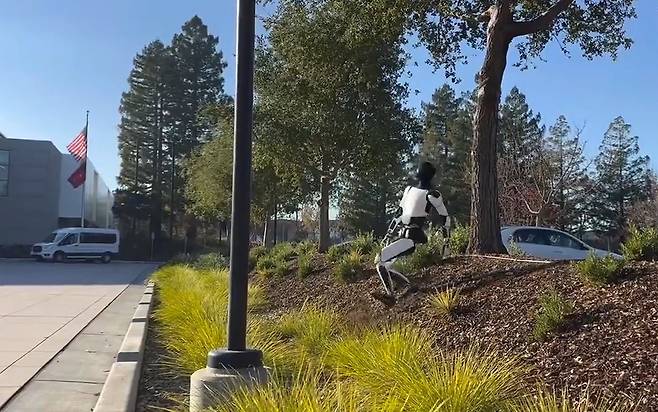 테슬라의 휴머노이드 로봇 '옵티머스'가 높낮이가 다른 지형에서도 걸을 수 있게 됐다. 비록 어설픈 걸음걸이지만, 미끄러운 경사면에서 균형을 잃었다가 회복하는 데도 성공했다. 특히 이번 실험은 로봇의 시각 시스템을 완전히 끈 상태로 진행됐다는 점이 주목된다.
