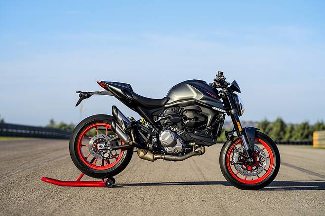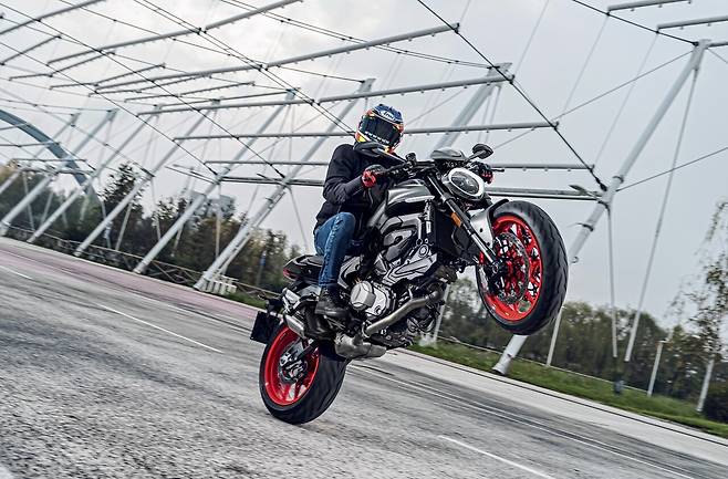 그럴만도 하다. 뉴몬스터는 기존 모델보다 18kg을 줄였다. 전체 중량에서 10%을 덜어냈다는 얘기다. 그야말로 마른수건에서 물을 짜내듯이 경량화한 아이디어가 신박하다. 프레임을 알루미늄으로 바꾸면서 4.5kg을 줄였고, 엔진에서 2.4kg을 감량했다. 시트쪽 서브프레임에서도 1.9kg, 앞뒤 휠에서 1.7kg, 스윙암 속을 비우는 방식으로 1.6kg을 뽑아냈다고 한다. 체급 경기에 나서는 스포츠 선수들이 삭발하고 사우나하고 침을 뱉어가며 체중을 줄여 '동급 최강'을 향해 나가는 방식과 닮았다.