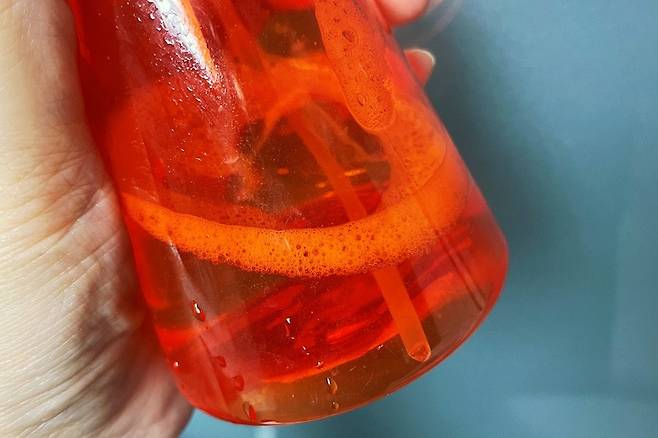 방법은 분무기에 물을 채우고 주방세제 2-3방울 섞어줍니다. 이렇게 비눗물을 사용하시면 그냥 물보다 훨씬 접착력 효과가 높아진다고 합니다.