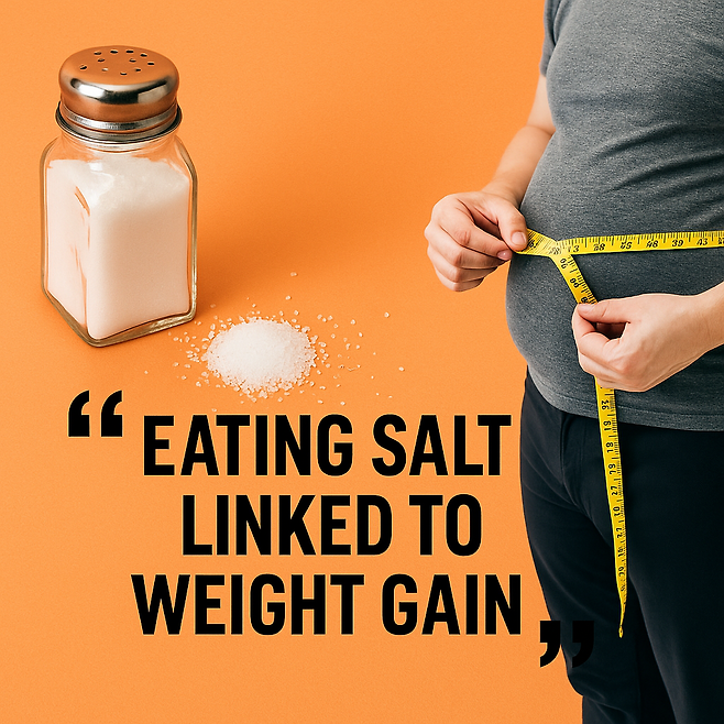 영국 퀸 메리 런던대학교 연구에 따르면, 소금 섭취가 1g 늘어날 때마다 체중 증가 위험은 20% 이상 증가한다고 보고됐습니다.