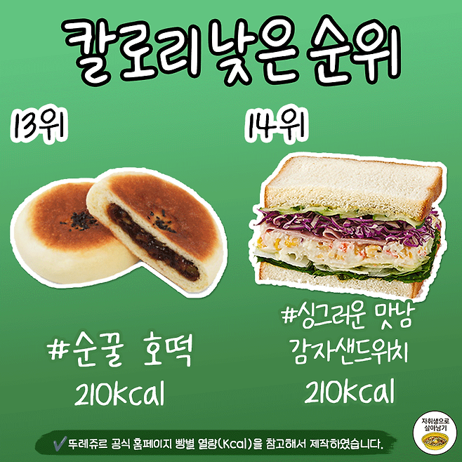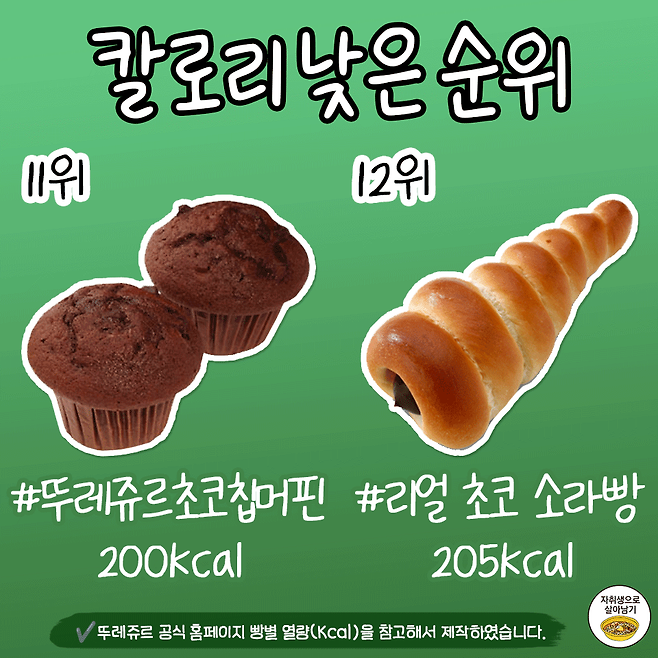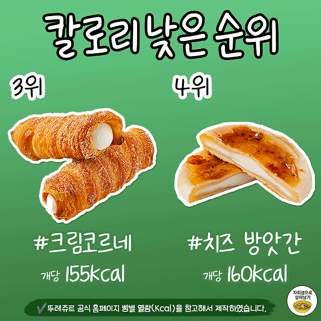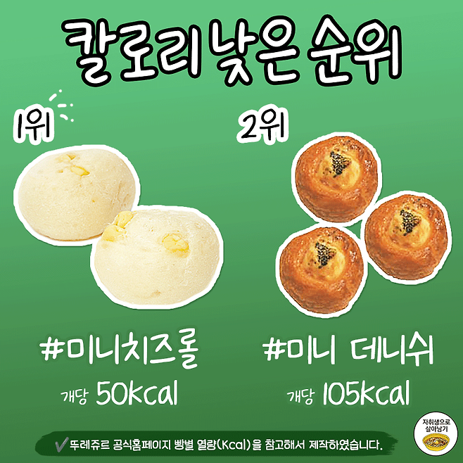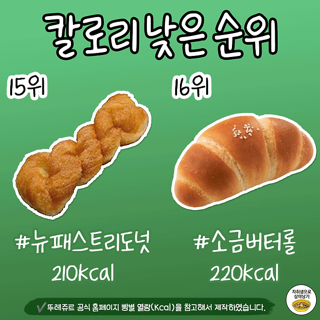 다이어터를 위한 뚜레쥬르 저칼로리 빵 순위표