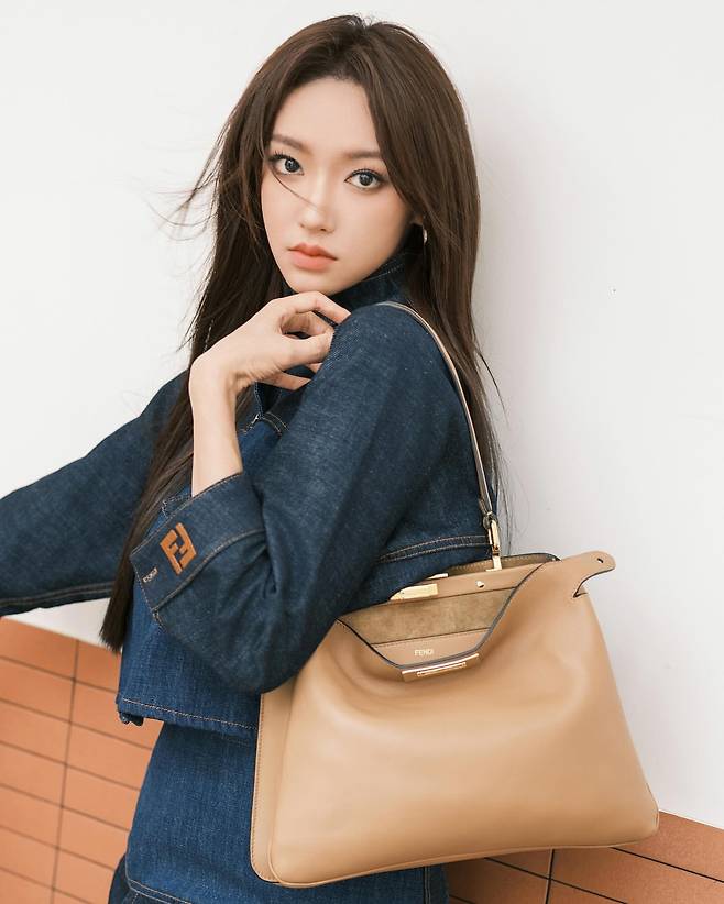 성소는 럭셔리 브랜드 화보에서 데님 재킷과 펜디 가방을 매치한 고급스러운 스타일을 선보이고 있다. 클래식한 데님 재킷에 브랜드 로고가 돋보이는 디테일이 특징이며, 베이지 컬러의 펜디 가방과의 조화로 세련된 컬러 밸런스를 이루고 있다. 자연스러운 포즈와 함께 럭셔리 브랜드의 뮤즈로서의 면모를 완벽하게 보여주고 있다.