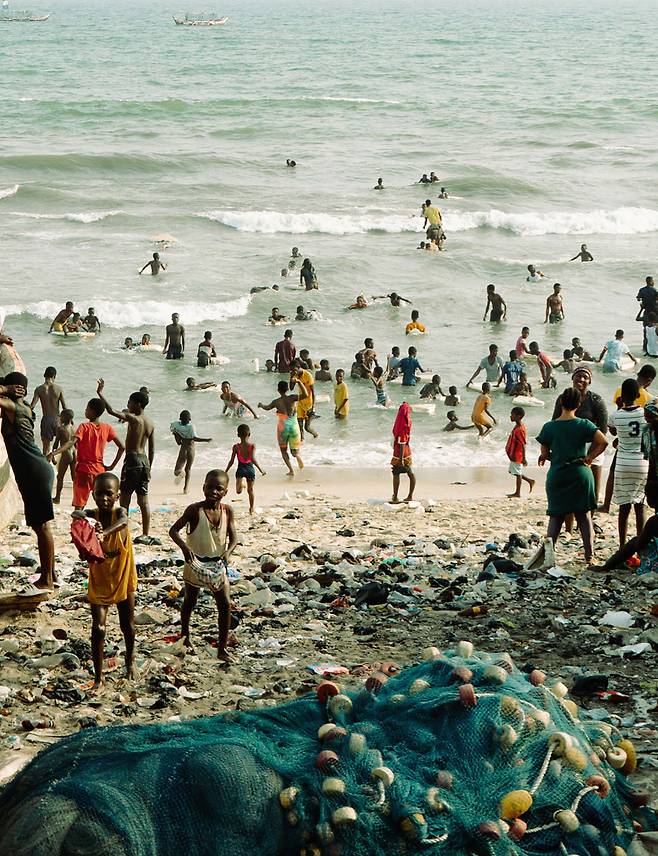 그러나 이번 호의 핵심은 무엇보다도 아래에서 확인할 수 있는 아데톨라니 데이비스 주니어(Adetolani Davies Jr.)의 사진으로, 올해 초 가나의 수도에서 포착한 거리의 풍경들로 이루어져 있다. 생선잡이 배가 바다에서 돌아오고 아이들은 파도에서 장난질을 하며, 10대들이 스케이트를 타는 동안 여자들은 문 앞에 앉아있다. 폐허로 변한 박물관부터 불법 복제 티셔츠로 가득 찬 분주한 시장의 풍경까지, 아래에서 그가 담은 아크라의 풍경을 감상해 보자.