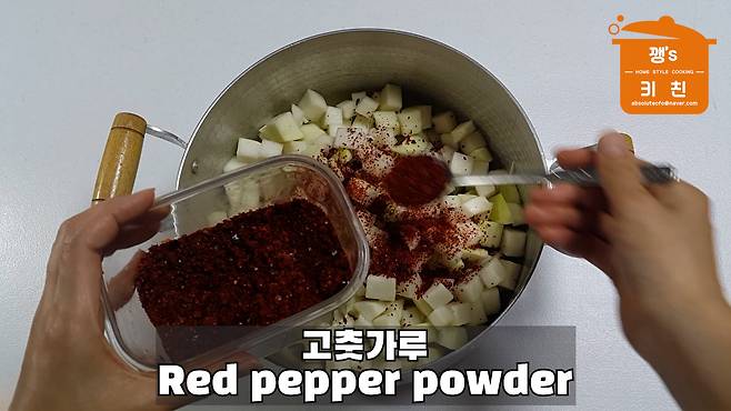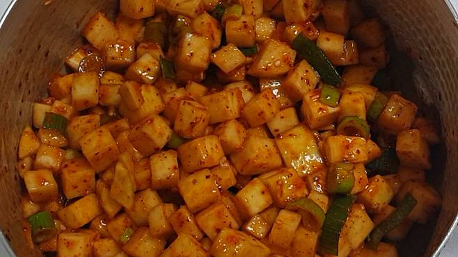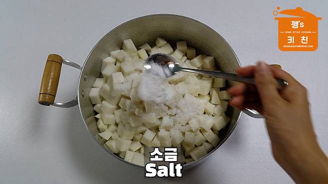 무, 소금 5T, 찹쌀가루 1/2T, 물 3T,