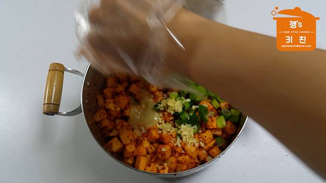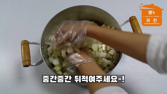 무, 소금 5T, 찹쌀가루 1/2T, 물 3T,