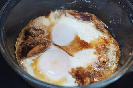 간장을 계란과 함께 전자레인지에서 익히면 일반적인 간장계란밥보다 부드럽게 먹을 수 있어요