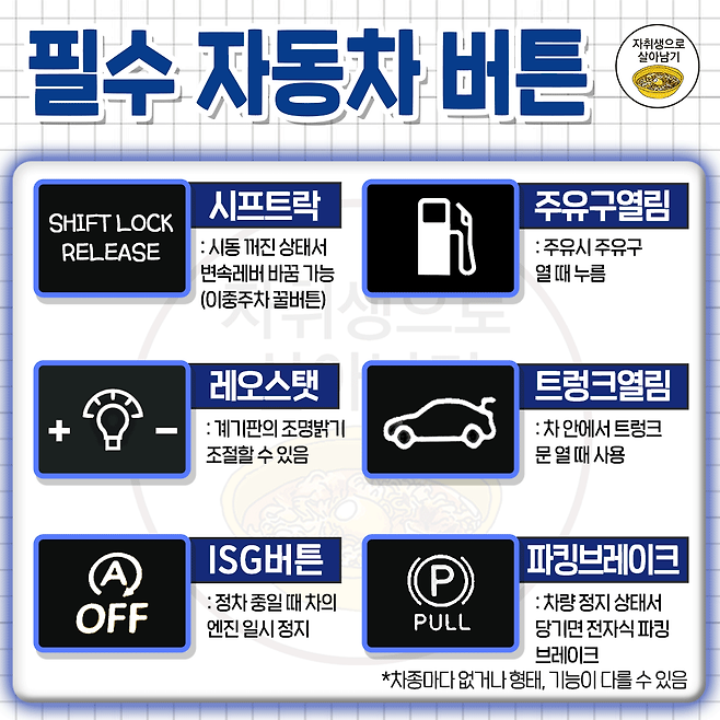 초보 운전자를 위한 자동차 조작 버튼 30개 총정리
