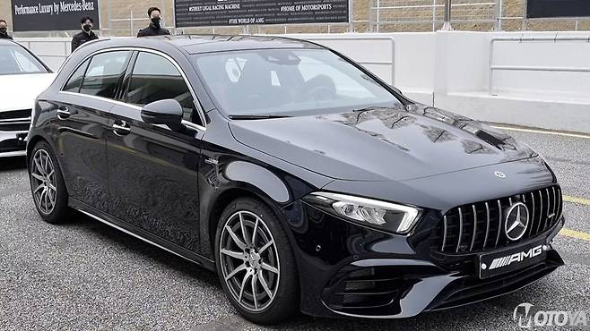 이 차는 메르세데스-AMG의 '젊은 피'라고 할 수 있는 모델이며, 가문의 이름에 부끄럽지 않은 뛰어난 성능은 물론, 핫해치만의 경쾌한 주행경험을 동시에 선사하는 매력덩어리다. 물론 해외 시장에는 421마력의 압도적인 성능을 자랑하는 AMG A45 S도 존재하지만, 국내시장에 정식 수입되는 모델이 이 모델이기에 여기서 다룬다. AMG A45는 신형의 A 클래스를 바탕으로 하고 있으며, AMG만의 섀시 튜닝과 엔진이 적용된다. 이 차에 탑재되는 M139 엔진은 AMG GT 4-도어 쿠페에 장착된 4.0리터 V8 바이터보 엔진과 동일한 개념의 기술이 적용되었으며, 2.0리터(1,991cc)의 총배기량으로 최고 출력 387마력, 최대 토크 48.9kg.m의 성능을 발휘, 배기량 1리터 당 최고출력 비가 무려 194.3마력에 달하는 초고성능을 자랑한다. 그런데 실제로 주행을 해 보면 저 어마어마한 출력과 토크가 부담스러울 법도 하지만, 탄탄한 하드웨어와 정교한 소프트웨어 덕택에 예상 외의 친절함이라는 반전매력도 가진 신통한 녀석이다. VAT 포함 차량 기본 가격은 7,090만원.