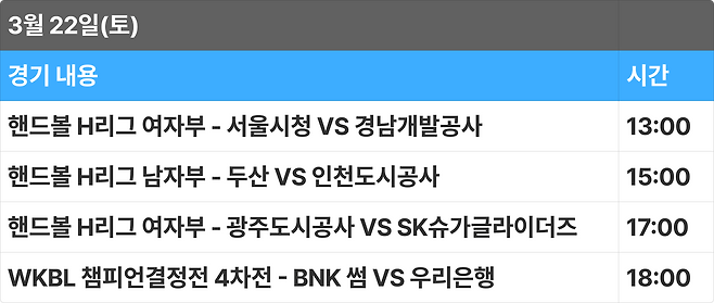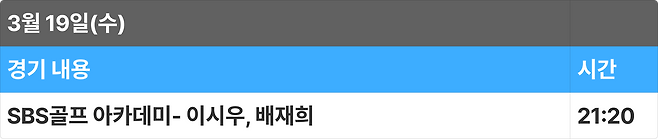 3월 19일(수) ~ 23일(일) 생중계 일정을 안내드립니다.