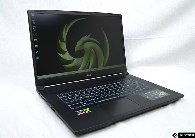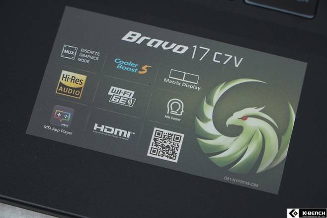 MSI 브라보 17 C7VF 모델은 올블랙 색상을 기반으로, 썬더버드 심볼로 멋을 더하고 있는 제품이다. 썬더버드의 붉은 눈동자 심볼을 통해 멋스러움을 더하고, 칼로 조각한 듯한 부분 부분이 매끄럽고 깔끔하게 조각된 느낌으로, 견고한 느낌까지 눈으로 느낄 수 있다.