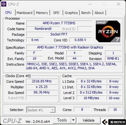 우선 스펙부터 살펴보자면, 일단 CPU는 AMD Ryzen 7 7735HS가 탑재되어 있다. AMD의 램브란트 시리즈로, 8코어 16스레드의 우수한 멀티코어, 멀티스레드를 갖춘 CPU다.
