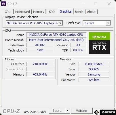 케이벤치에서 살펴본 MSI 브라보 17 C7VF 모델에는 NVIDIA의 지포스 RTX 4060 랩탑 버전이 탑재되어 있다. 이는 선택 옵션에 따라 조금 상이할 수 있다.