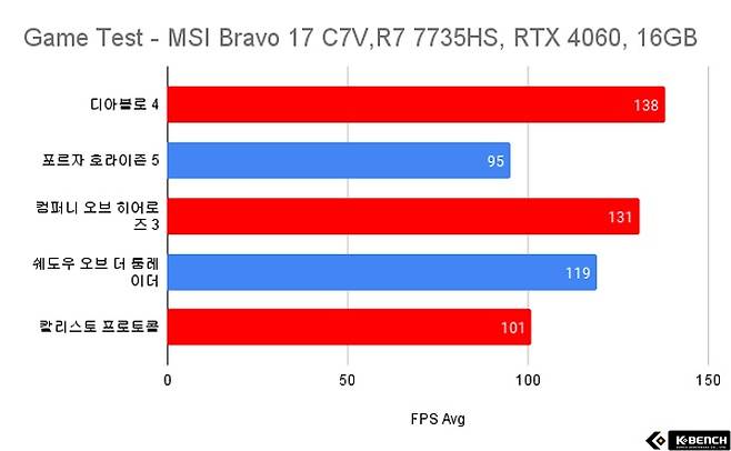 결과를 살펴보면, MSI 브라보 17 C7VF 모델의 확실히 뛰어난 게이밍 퍼포먼스를 살펴볼 수 있다.