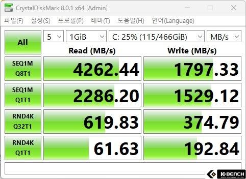 게임 성능 외에도 추가적인 성능 확인 해볼만한 부분으로 탑재된 스토리지 테스트가 있다. 512GB의 NVMe SSD가 탑재된 것으로 확인되는데, 속도 테스트시, 빠른 읽기 성능을 제공하고, 준수한 쓰기 성능을 제공함에 따라 게임이든, 크리에이티브한 작업을 함에도 부족함이 없을 것으로 생각된다.