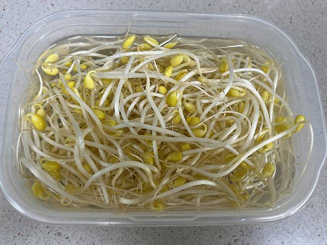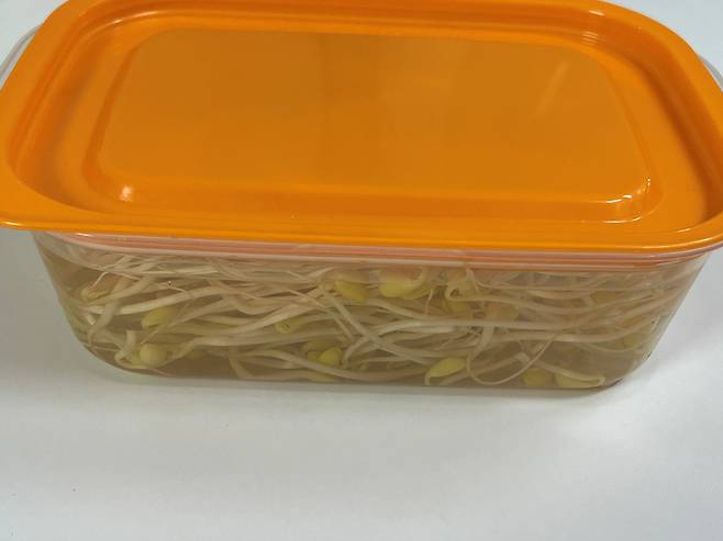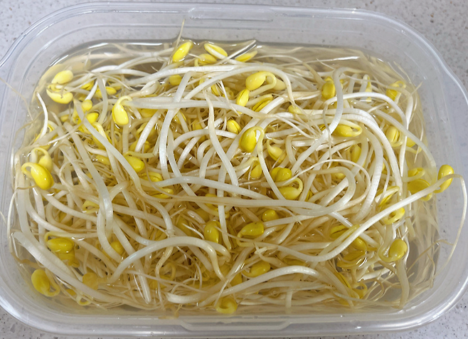 물에 담가서 보관하면 생 콩나물을 신선하게, 오래 보관할 수 있습니다. 먼저 콩나물을 흐르는 물에 가볍게 헹군 뒤, 밀폐용기에 담고 콩나물이 완전히 잠기도록 찬물을 부어 주세요.