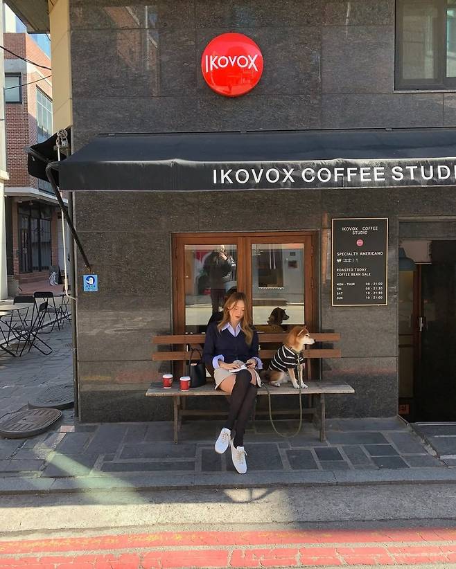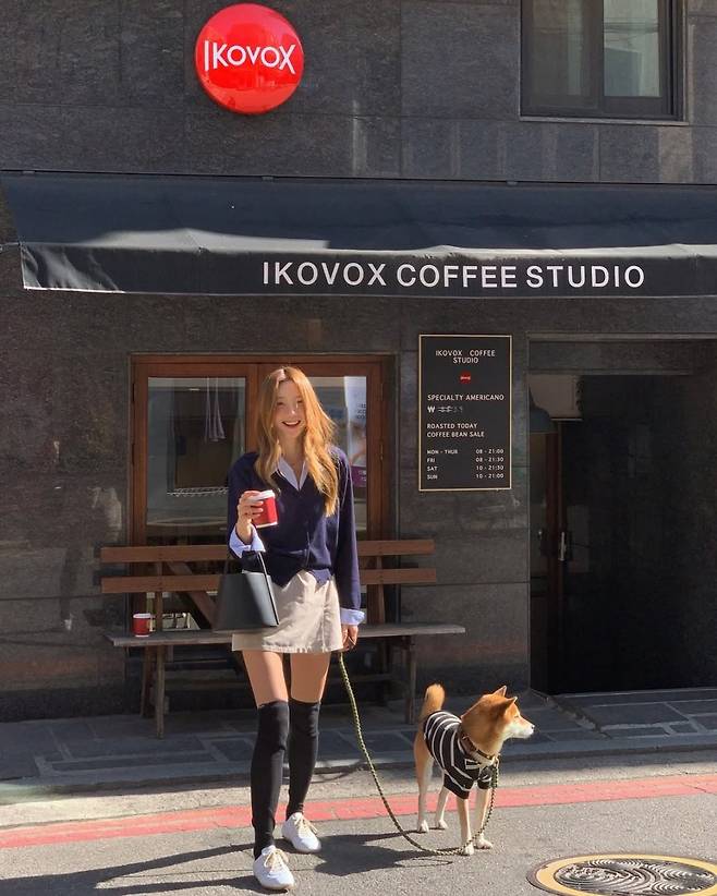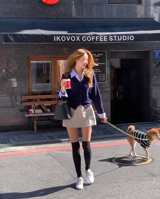 어느 맑은 봄날, 젤라비가 커피 한 잔 들고 여유롭게 거리를 걷고 있어. 햇살이 따뜻하게 비치는 이 순간, 그녀의 코디는 그야말로 ‘봄 그 자체’!