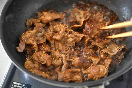 4. 고기와 양념이 고루 섞이도록 저어가며 1분~1분 반 정도 더 볶아 양념을 졸인다.