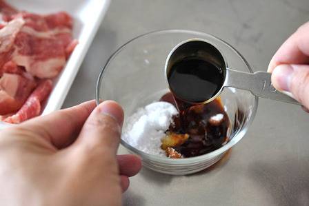 돼지고기 또는 소고기(얇게 썬 것) 200250g, 밥 2~3공기, 간장 2큰술, 설탕 1큰술, 다진 마늘 1작은술, 다진 생강 1작은술, 참기름 2작은술, 맛술 1큰술, 흰깨 1작은술, 고춧가루 약간, 후추 약간