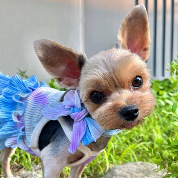 망고는 5살이 된 수컷 요크셔테리어로 언제나 보호자와 같이 붙어 다니고 잘 때도 꼭 살을 맞대고 자는 사랑둥이란다.