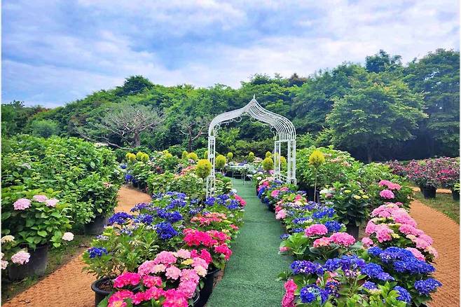 서울에서 차로 1시간 남짓, 광주시 율봄식물원에 수국이 피기 시작했다. 6월 초중순 절정을 앞둔 이곳은 수국 사이를 걸으며 도시락을 즐길 수 있는 조용한 힐링 산책지다.