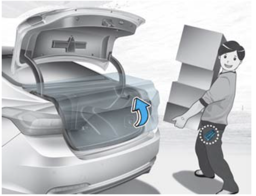상황: 양손 가득 무거운 짐을 들고 있어, 스마트키를 꺼내거나 트렁크 버튼을 누르기 힘들 때.