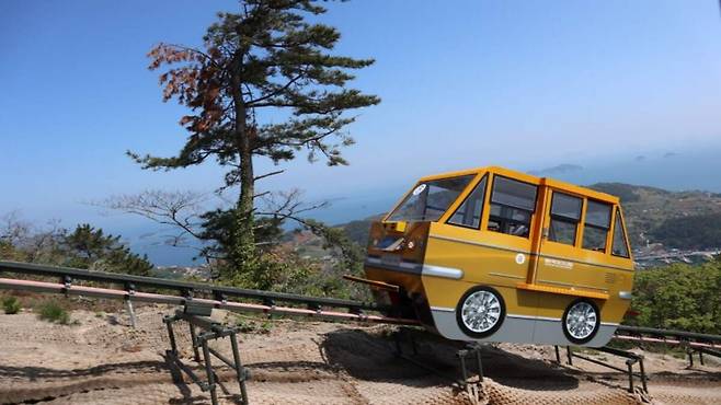 가파른 경사를 따라 천천히 올라가는 모노레일 창밖으로 펼쳐지는 남해의 다도해 풍경은 그야말로 장관을 이룹니다.