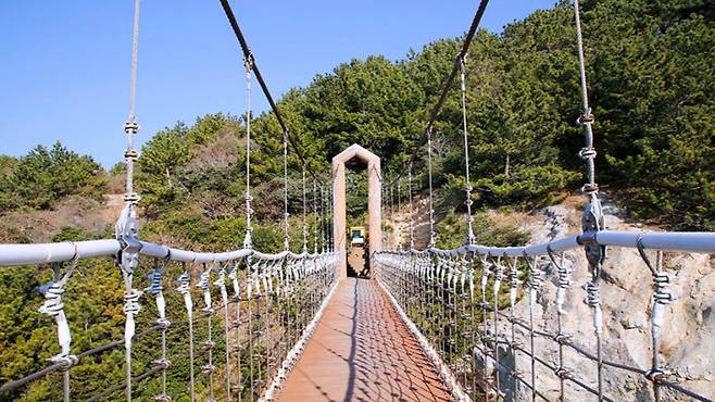 해안 절벽을 따라 조성된 비렁길을 걷다 보면 바다 위를 걷는 듯한 스릴을 즐길 수 있는 출렁다리를 만나게 됩니다.