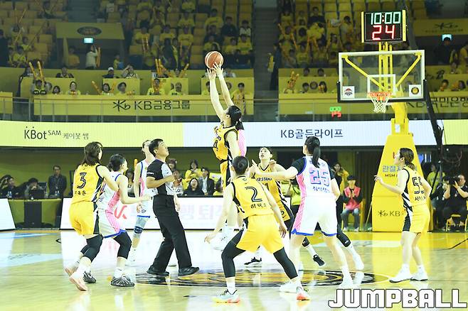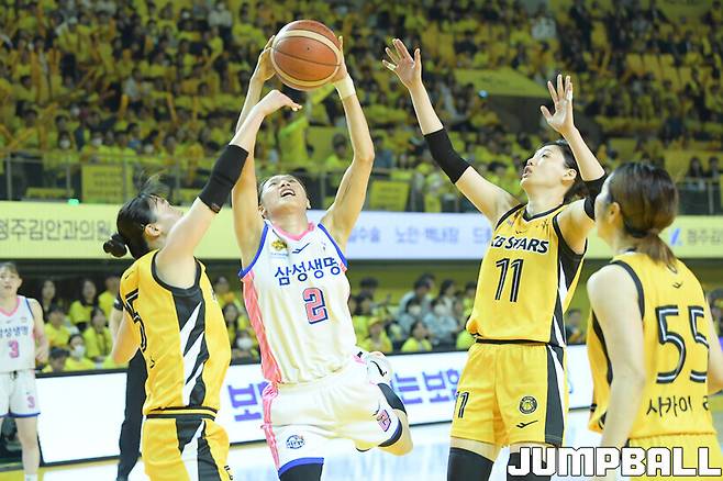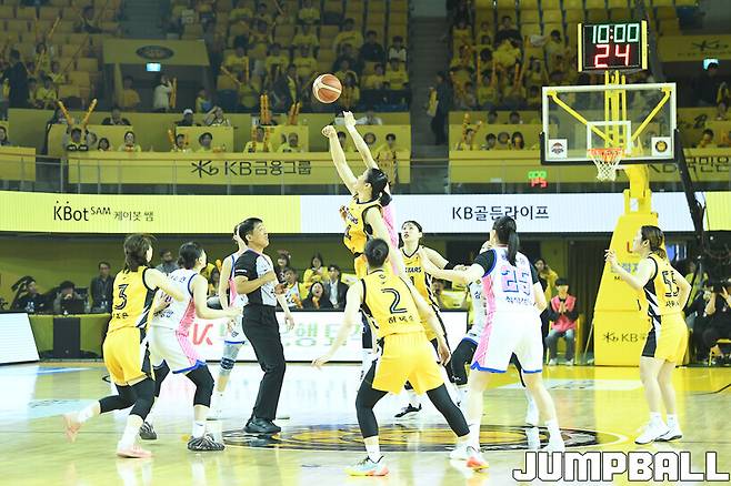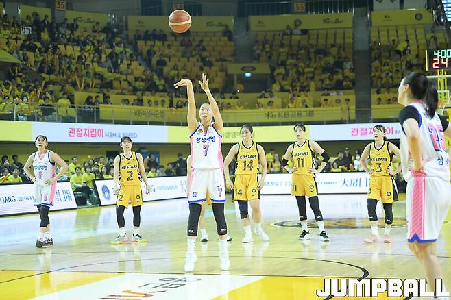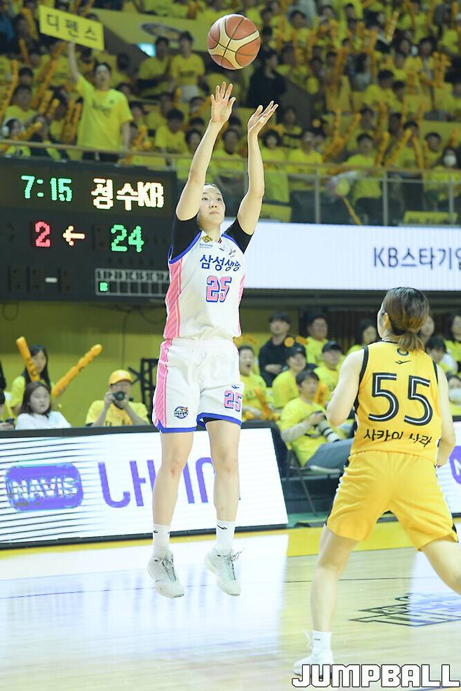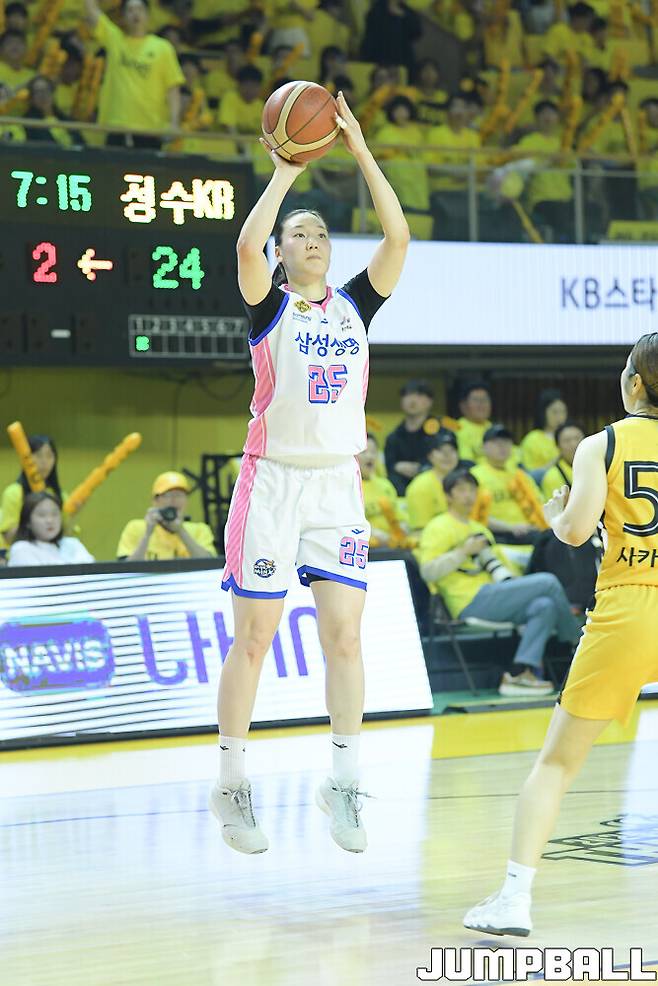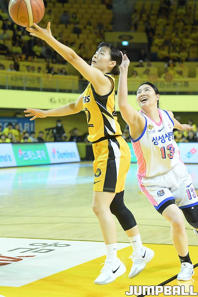 [점프볼=청주/유용우 기자] 22일 청주체육관에서 열린 청주 KB스타즈와 용인 삼성생명의 BNK금융 2025~2026 여자프로농구 챔피언결정전 1차전, KB가 69-56으로 삼성생명에 승리하며 챔프전 전적 1-0으로 앞서나가게 됐다.