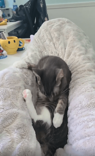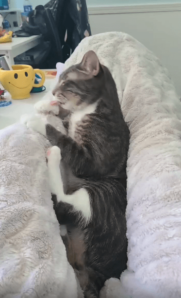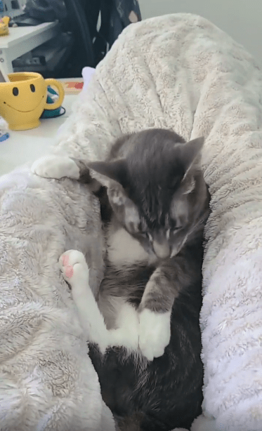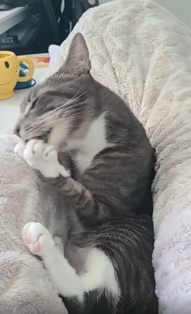 고양이는 털 사이의 먼지라도 남아 있을까 조심스럽게 혀를 눌러 문지르고, 또 한 번 방향을 바꿔 핥기를 반복했어요. 특히 발바닥의 젤리 부분, 일명 ‘빈(beans)’이라 불리는 그 말랑한 부분까지 신중하게 닦는 모습을 보며 보는 이들은 감탄을 금치 못했죠. 저 작은 발가락 사이에 뭐가 있길래, 저렇게 집중한 표정이 나오는 걸까요?