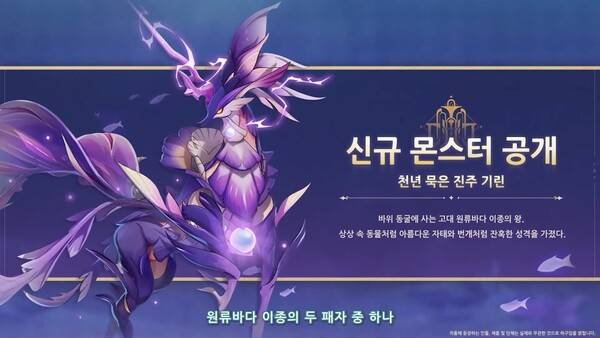 숨겨진 수중 동굴에도 신규 몬스터가 등장한다. 방울 해마가 등장해 탄생한 최상위 포식자 '천년 묵은 진주 기린'이 대표적이다. 마치 환상 속의 동물처럼 진화했다. 머리 아래 위치한 기이한 바다의 진주는 번개 원소 결정이다. 진주를 통해 맹렬한 원소 공격과 함께 강력한 방어 능력을 펼칠 수 있다.