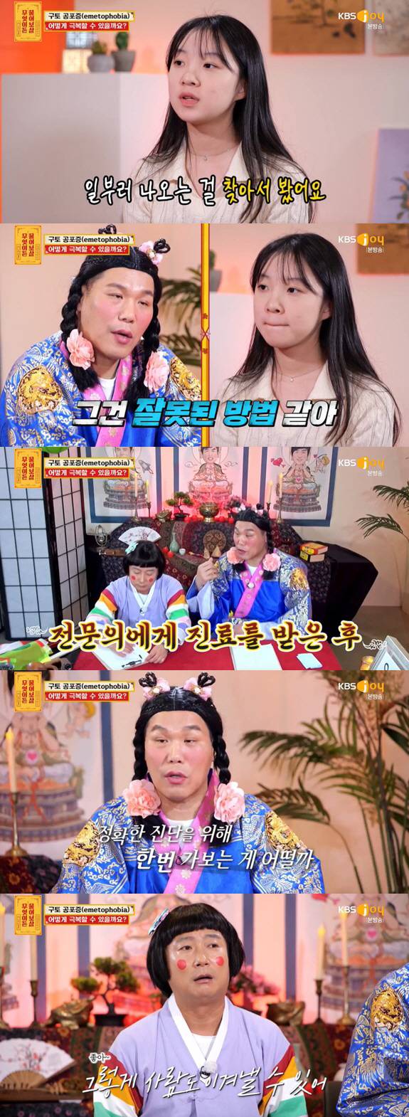 16일 방송된 KBS Joy '무엇이든 물어보살'에서는 구토 공포증을 가지고 있는 여중생이 출연했다.
