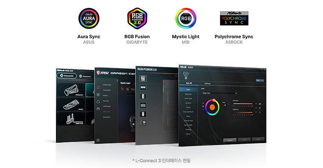 모든 ARGB 기기를 각자, 혹은 허브를 통해 메인보드로 잘 연결했다면 이제 메인보드 제조사에서 제공하는 연동 프로그램을 가동할 차례다. 4대 메이저 메인보드 제조사들은 고유 ARG 연동 프로그램을 무료로 제공한다.