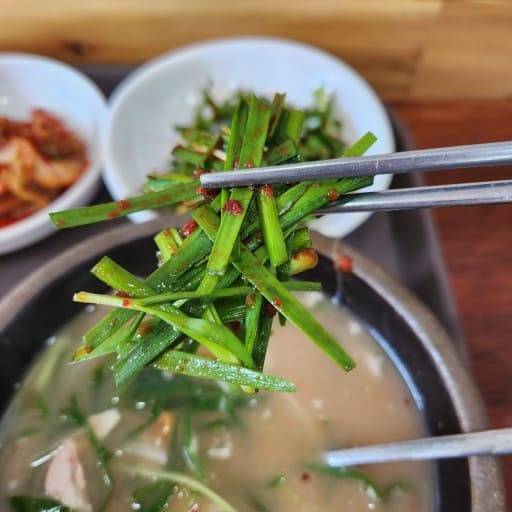 많은 손님들이 이곳 돼지국밥의 매력으로 꼽는 것은 돼지 특유의 비린내가 적고 느끼하지 않다는 점입니다. 따라서 평소 돼지국밥을 즐기지 않으셨던 분들도 부담 없이 드실 수 있습니다. 국물은 깊고 진한 맛을 내면서도 담백하여, 한 그릇을 비우고 나서도 속이 편안합니다.